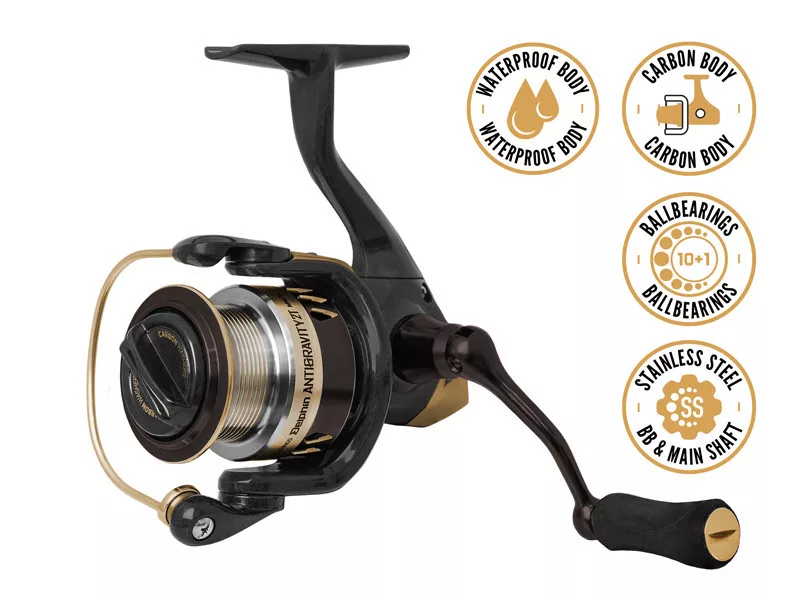 Le poids extrêmement faible est assuré par le corps en carbone et la bobine métallique allégée. Grâce à ses dimensions compactes, l'ANTIGRAVITY est un compagnon idéal pour la pêche au lancer, la pêche au flotteur ou le light feeder. À l'intérieur du corps se trouve un mécanisme précisément conçu avec un rapport de transmission de 5,2:1, qui, avec le système de 10+1 roulements, assure un fonctionnement très fluide. De plus, les roulements sont en matériau inoxydable, garantissant une longue durée de vie, à laquelle contribue également le corps du moulinet étanche. La manivelle métallique se visse directement dans le corps du moulinet, éliminant ainsi tout jeu. La prise confortable de la manivelle est assurée par une mousse EVA souple. Le frein avant avec rondelles en carbone permet un réglage précis de la puissance de freinage. La bobine légère et peu profonde avec un bord de lancer permet des lancers précis. Pour toutes les tailles d'ANTIGRAVITY, une bobine de rechange en aluminium peut être achetée au besoin.
