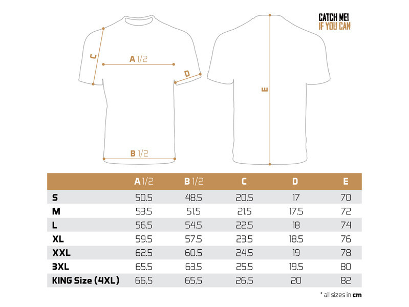 Le t-shirt lui-même est d'excellente qualité, tout comme l'impression couleur utilisée. Nous le proposons dans une large gamme de tailles, du S au KING SIZE (correspond au 4 + XL, ce qui est appelé XXXXXL dans la plupart des pays). Le modèle de taille King habille avec aisance même les pêcheurs les plus corpulents, pesant 135 kg et plus.