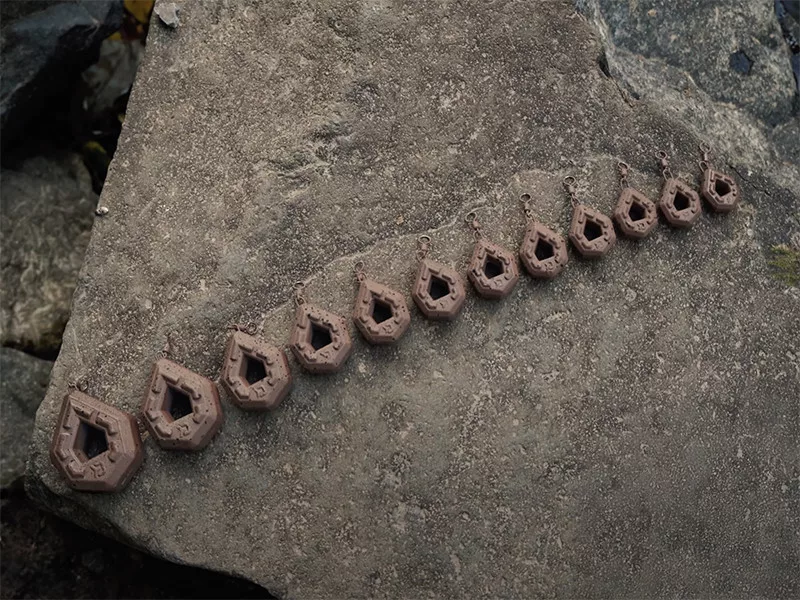 Un poids en plomb innovant de Delphin, que nous recommandons pour les fonds irréguliers ou la pêche en rivière. Grâce à sa forme carrée unique, nous avons réussi à créer un poids compact qui, tout en ayant le même poids que les autres plombs disponibles sur le marché, est significativement plus petit. Cela garantit d'excellentes propriétés de lancer et une descente rapide. Pour allonger et rendre vos lancers plus précis, la partie inférieure du plomb est évasée. Les entailles sur la surface empêchent le plomb de glisser sur le fond du lit. L'ouverture centrale permet une descente plus rapide. La surface du plomb est recouverte d'une couleur brunâtre, ornée de taches noires, pour un meilleur camouflage sur le fond du lit.