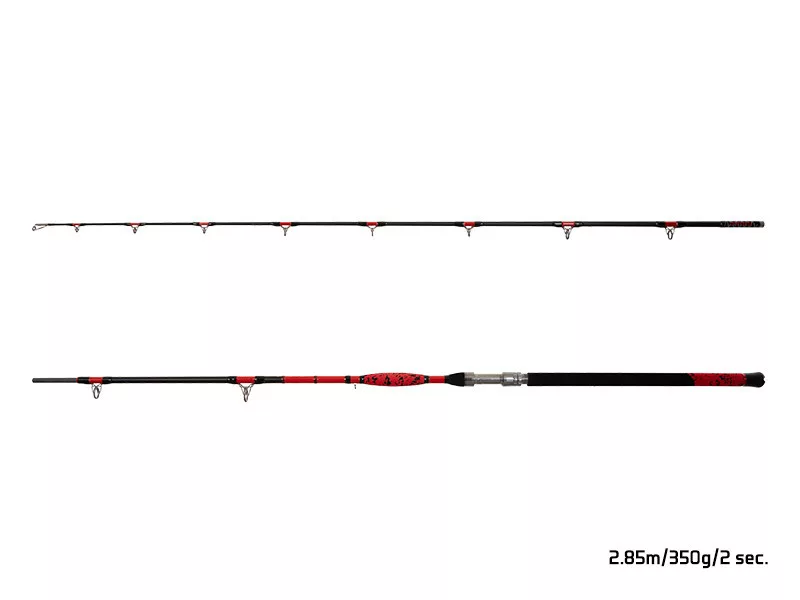 La combinaison de couleurs noir et rouge et les éléments de design impressionnants rendent cette canne absolument unique. La canne Delphin Danger CatFish est fabriquée à partir de matériaux solides et durables. Le corps de la canne est principalement léger mais robuste, en graphite, ce qui permet des lancers précis et puissants. Grâce aux matériaux résistants aux chocs, vous n'aurez pas à vous soucier de la casse de la canne, même si vous menez un combat acharné avec un poisson-chat géant. Sa longueur est de 2,85 mètres, ce qui est idéal pour la pêche au silure. Cette longueur vous permet de lancer l'appât loin et de guider facilement le poisson vers le rivage ou le bateau une fois que vous l'avez attrapé. Le poids et la puissance de lancer de la canne sont également des facteurs importants. Une puissance de lancer de 350 grammes permet d'utiliser des appâts plus gros et des montages plus lourds, ce qui vous permet de pêcher les silures plus efficacement. Cela signifie également que la canne a une puissance suffisante pour lutter contre les poissons plus gros. La conception en deux sections permet un transport confortable et elle est facile à ranger, même dans une petite voiture. Nous l'avons équipée d'anneaux métalliques puissants qui résistent aux charges lourdes. La poignée complète est recouverte de mousse EVA pour une prise plus confortable. Le porte-moulinet robuste en métal avec deux écrous assure suffisamment d'espace même pour le plus grand moulinet de pêche au silure. De plus, son montage est facile, vous pouvez donc être rapidement prêt pour la pêche. Elle est capable de gérer la résistance et le combat des plus grandes espèces de silures, tout en maintenant la sensibilité et la précision pendant la pêche. Sa longueur de transport est de 150cm, son poids de 450g. Le diamètre du corps de la canne au-dessus de la poignée : 15,3mm. La longueur de la poignée de l'extrémité de la canne au milieu du porte-moulinet est de 58,5 cm. Avec 11 anneaux Sic.