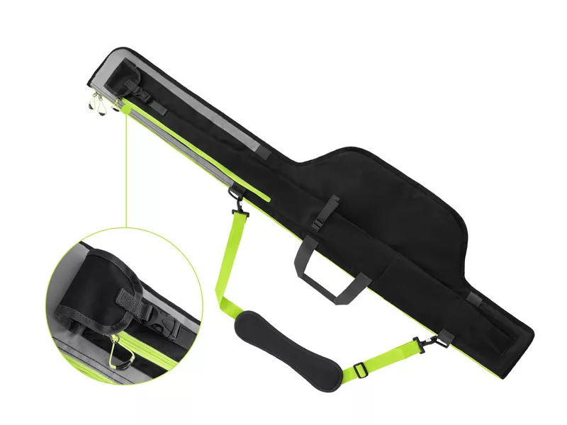 L'intérieur du fourreau offre beaucoup d'espace pour ranger confortablement des cannes feeder de différentes tailles. Grâce à cet espace généreux, vous n'avez pas à vous soucier qu'une canne ne rentre pas. Il est fabriqué à partir d'un matériau durable de couleur noire et grise, avec des détails verts audacieux. Le matériau résiste également aux pluies légères, à l'humidité due à la rosée et aux manipulations rudes.