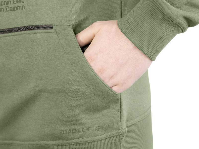 Il dispose d'une grande capuche avec un large cordon de serrage, réglable si nécessaire. Les extrémités des manches sont étroites et équipées de poignets élastiques pour s'adapter parfaitement autour du poignet. De plus, le sweat est doté d'une grande poche TACKLE POCKET à double fermeture éclair, adaptée au rangement de l'équipement de pêche ou d'objets essentiels tels que le téléphone ou le portefeuille. En dessous se trouve également une grande poche kangourou, parfaite pour réchauffer les mains par temps froid. La taille est également dotée d'une bande élastique pour un meilleur ajustement au corps.