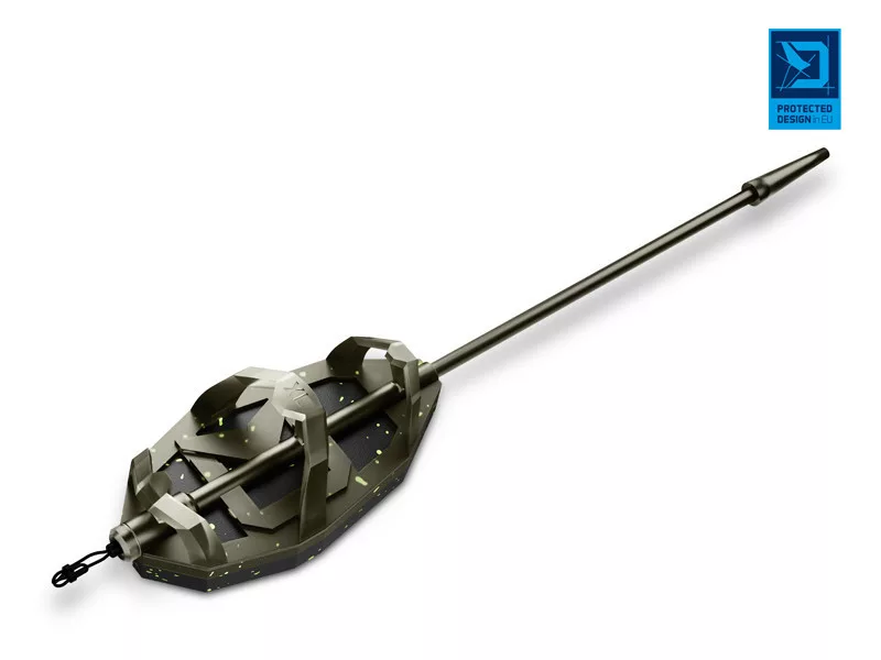 Le poids de 90 grammes et la taille XL en font l'un des éléments les plus lourds de la série, offrant une stabilité exceptionnelle pour les lancers puissants et dans les eaux plus profondes. L'avantage pratique d'un espacement des nervures accru est que le pêcheur peut utiliser en toute confiance des appâts plus volumineux, tels que des bouillettes ou des pellets plus grands, avec lesquels il peut cibler spécifiquement les carpes capitales. La surface inférieure du poids en acier est équipée de bords d'accroche et de saillies spéciales qui offrent une fixation mécanique sur diverses surfaces du fond, empêchant le mouvement du montage.