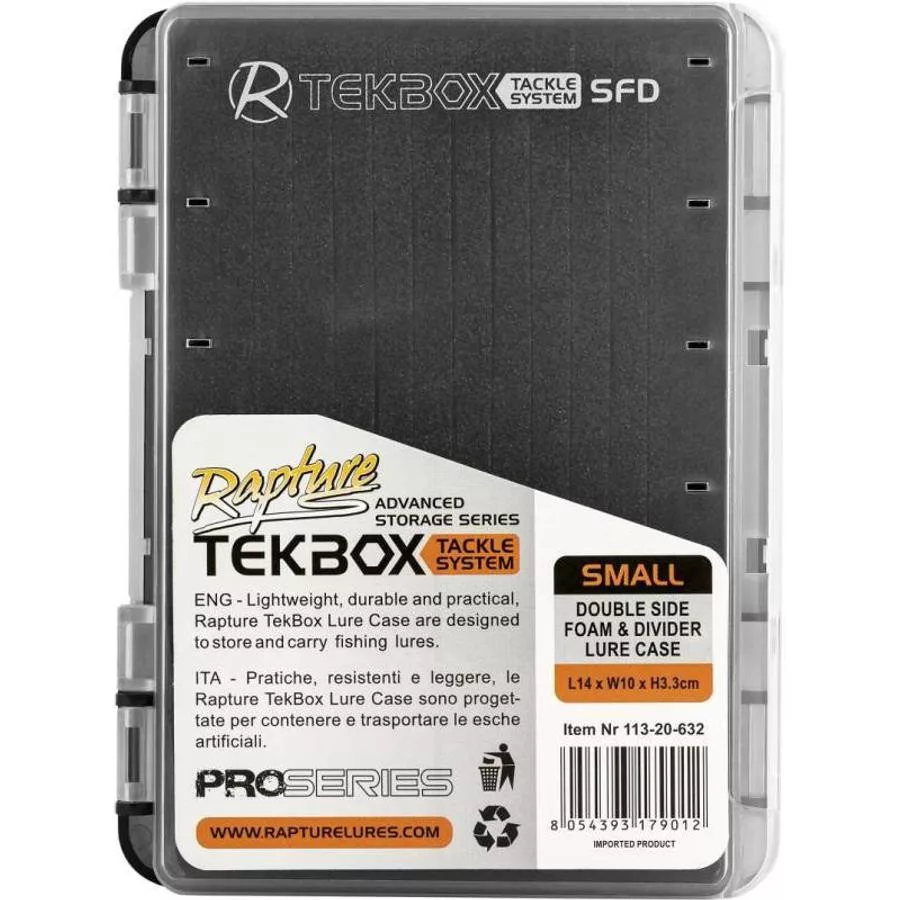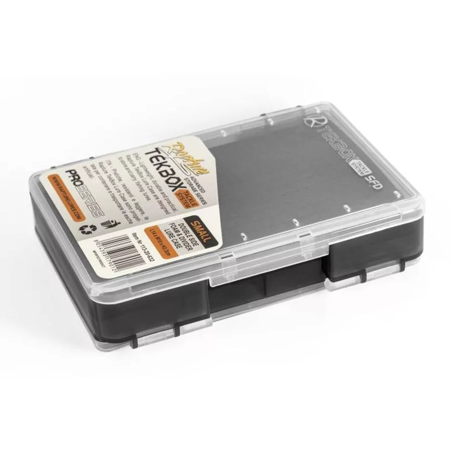 La Rapture Tekbox Tackle System S FD est une boîte à pêche compacte (14×10×3,3 cm) mais extrêmement pratique, conçue spécifiquement pour les besoins des pêcheurs modernes. Fabriquée en plastique durable de haute qualité, elle résiste non seulement à une utilisation quotidienne, mais aussi aux effets nocifs des rayons UV à long terme – aidée en cela par le revêtement mat qui protège le contenu de la boîte du soleil. Son matériau est entièrement compatible avec celui des leurres souples, vous n'avez donc pas à craindre que la boîte et les appâts réagissent chimiquement entre eux. Cette caractéristique est particulièrement importante pour la protection des leurres de qualité.