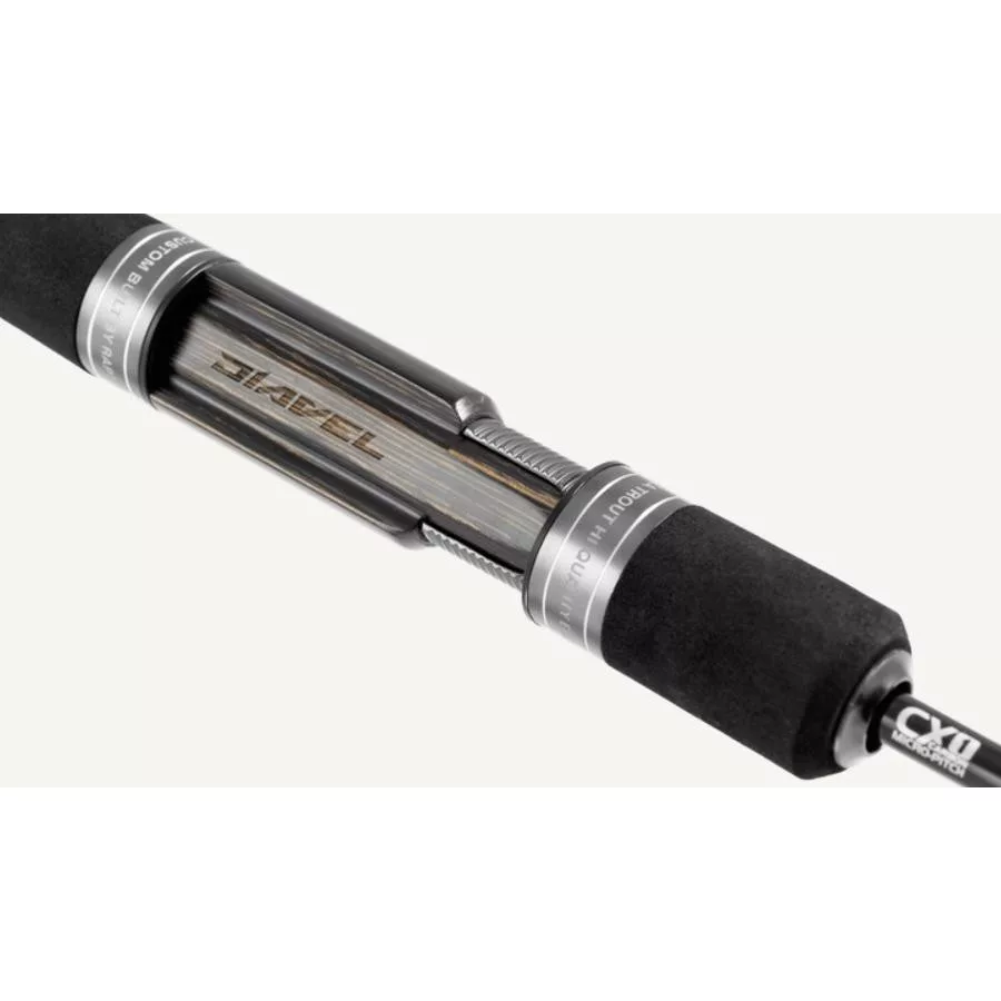 Le corps de la canne est composé de carbone haut module CX-1 Micro Pitch, ce qui donne une structure super fine, mais incroyablement solide et flexible. Ce matériau garantit une réaction rapide et une excellente transmission des vibrations, de sorte que la moindre touche est immédiatement perceptible. L'action regular slow s'adapte parfaitement à l'utilisation de cuillères légères et de lignes fines, rendant la pêche avec cette canne non seulement technique, mais aussi extrêmement divertissante.