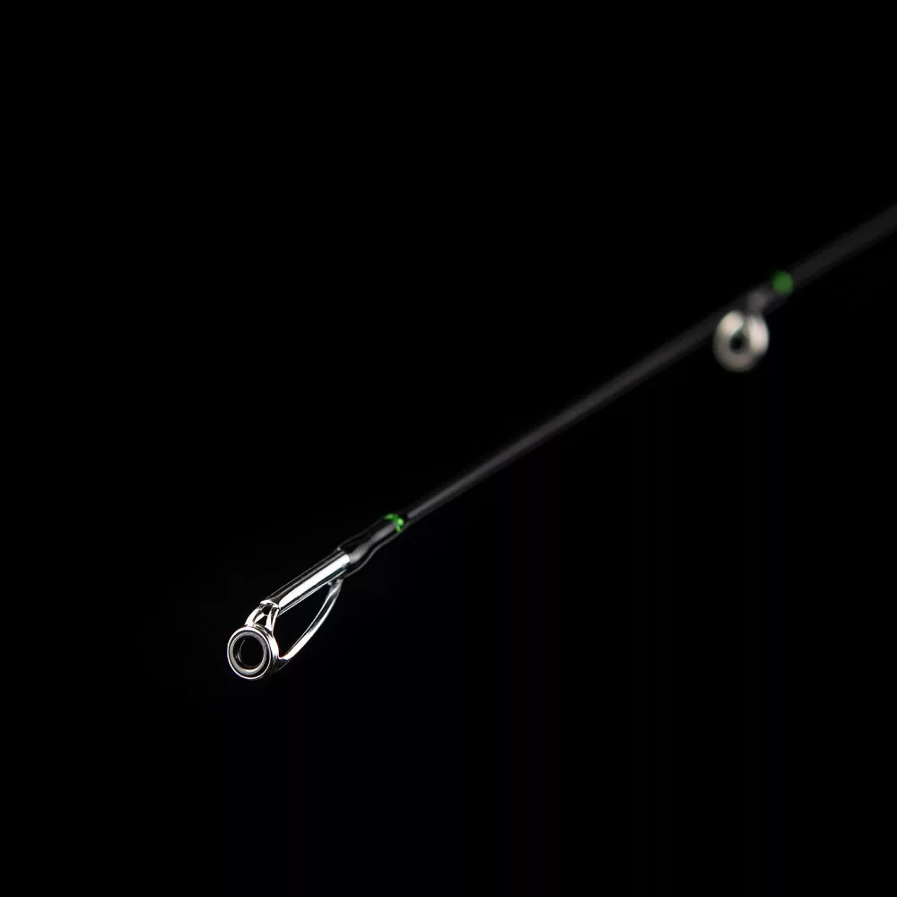 Malgré son diamètre fin, elle a une action rapide et tendue. Excellente pour les leurres wobbler et les shads. Nous l'avons équipée d'anneaux SIC à pattes allongées, augmentant ainsi la distance et la précision de lancer. C'est la canne idéale pour les pêcheurs spinning débutants et intermédiaires.