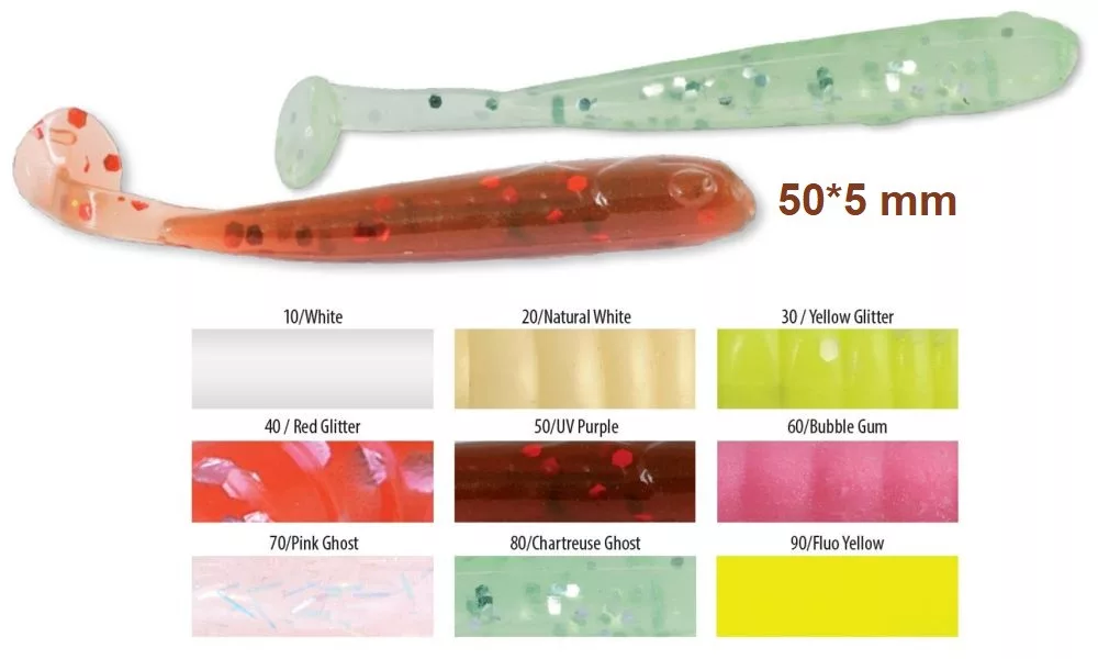 Trabucco Slurp Bait T-Shad Chartreuse Ghost Leurre en Plastique 10 pièces