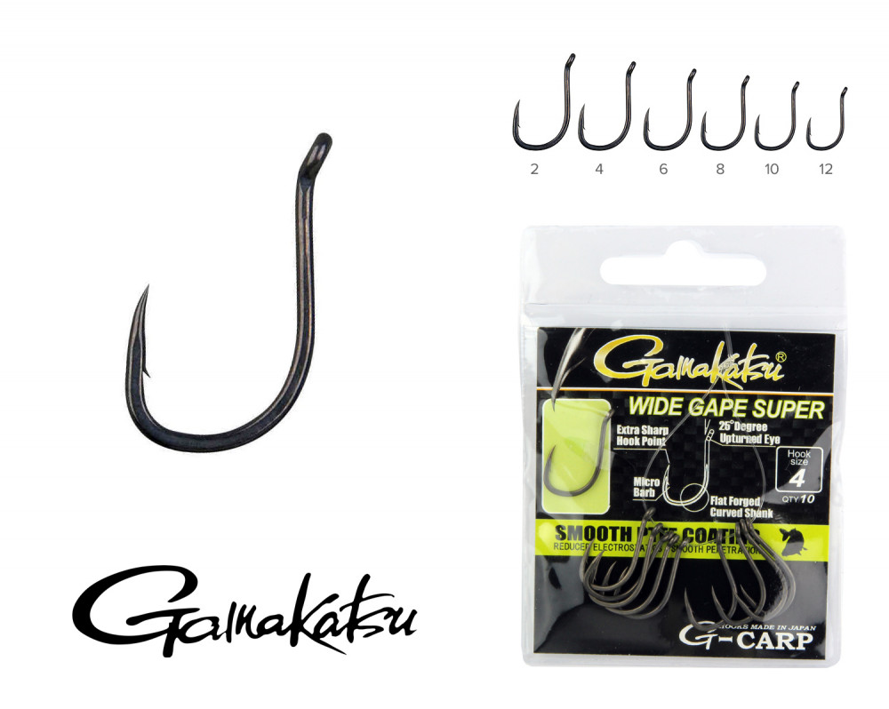 Gamakatsu G-Carp Wide Gape Super Noir 10 10db/csomag À œillet À micro ardillon Hameçon à bouillette