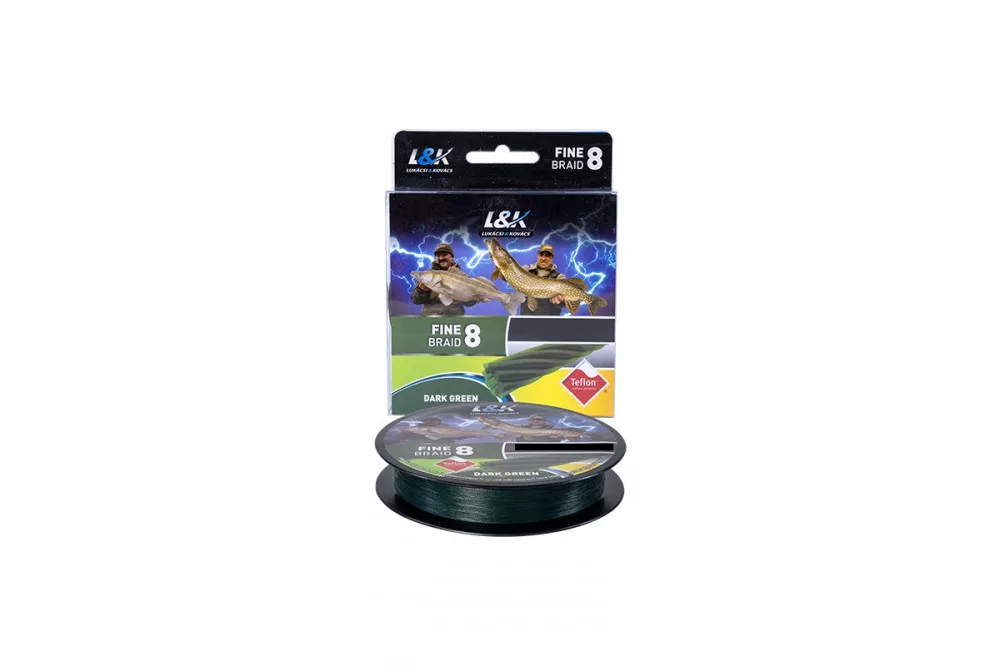 L&K Fine Braid tresse - La Fine Braid a été encore affinée par rapport à nos tresses existantes. Sa structure tressée à 8 brins lui confère une section transversale beaucoup plus uniforme, ce qui rend ses données de friction beaucoup plus favorables. Il en résulte une plus grande distance de lancer atteignable et une moindre résistance dans l'eau. Disponible en bobines de 150 mètres, ce qui en fait une solution universelle, selon la méthode, pour les besoins de la pêche UL au lancer jusqu'à la pêche des grands silures.