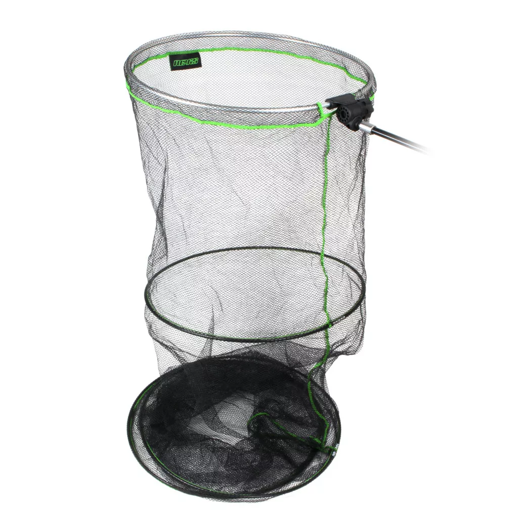 Bourriche professionnelle fabriquée avec un cadre robuste et un filet haute densité. Les épines dorsales ne s'accrochent pas dans le filet enduit très résistant à l'abrasion. Avec une tête à angle réglable et un connecteur de poignée fileté.