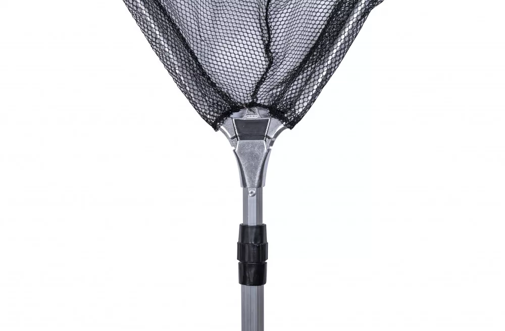Télescopique, on peut donc l'utiliser à différentes longueurs et il prend peu de place. La fixation se fait à l'aide d'une molette en plastique située au niveau de la jonction des sections. Sa tête est pliable, on peut donc la transporter même dans une housse à cannes. La jonction des branches du filet au manche est en fonte métallique, ce qui n'est pas fragile et est très résistant.