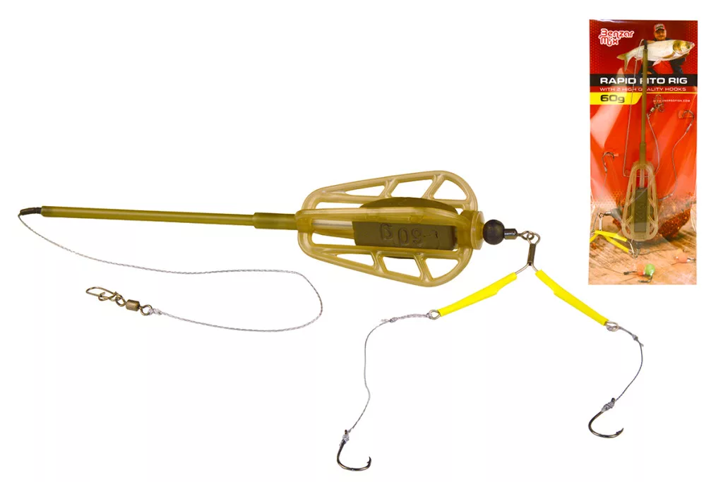 Le nouveau Rapid Busázó Szerelék, un élément de montage pré-monté de la gamme de la marque Benzár, est désormais disponible. C'est un montage professionnel de haute qualité, composé de composants de premier ordre, avec lequel n'importe qui peut se lancer à la poursuite des carpes herbivores en toute tranquillité. Le panier, fixé par des butées supérieures et sécurisé en bas par un mousqueton double renforcé et espacé, a une capacité d'amorçage suffisamment grande, et, comme il est disponible avec un poids très élevé, il constitue une alternative adaptée même pour la pêche en rivière. Les hameçons sont de qualité, très pointus et très, très solides, sur lesquels même les bonnes carpes herbivores ne s'échapperont pas ! Comme on peut le voir, il s'agit d'une solution à deux hameçons. L'un des bas de ligne mesure 7 cm, l'autre 10 cm de long. Bien sûr, il est recommandé de les utiliser tous les deux avec un technopuf !