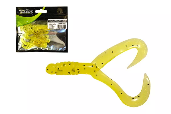 Le contenu du paquet : Wizard Harpex Twist Double Coquelicot-Jaune 7cm Twister 5 pièces