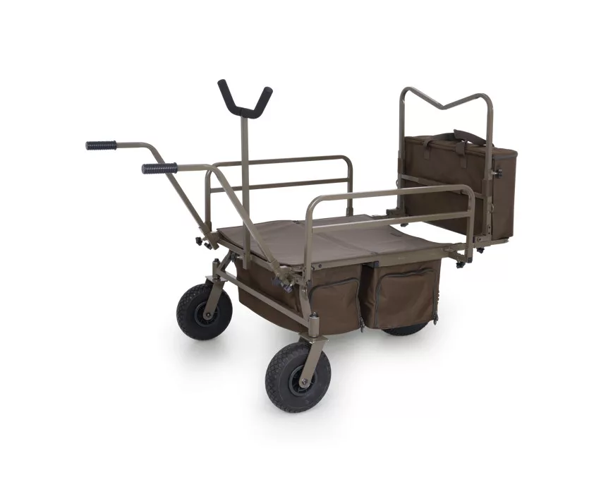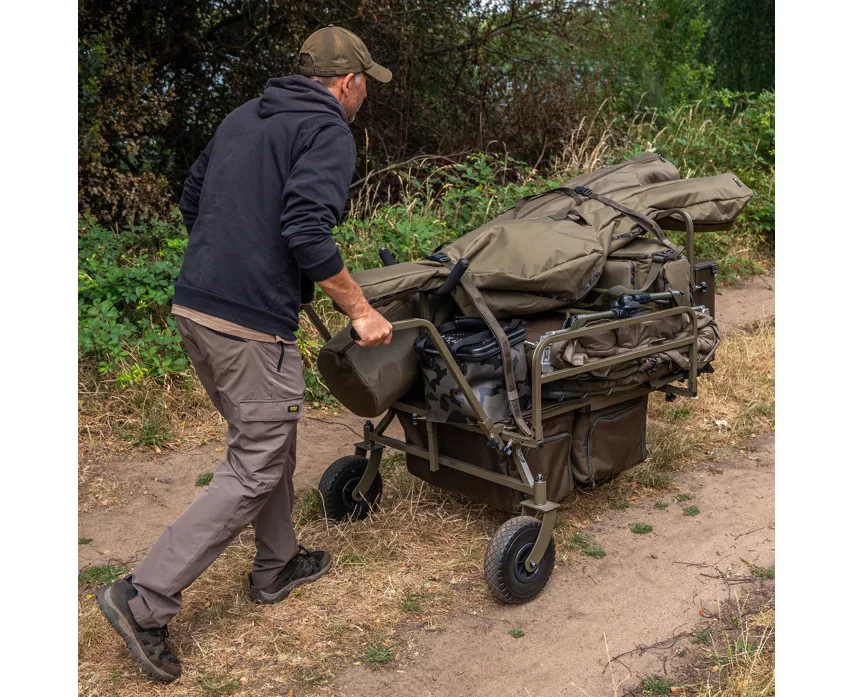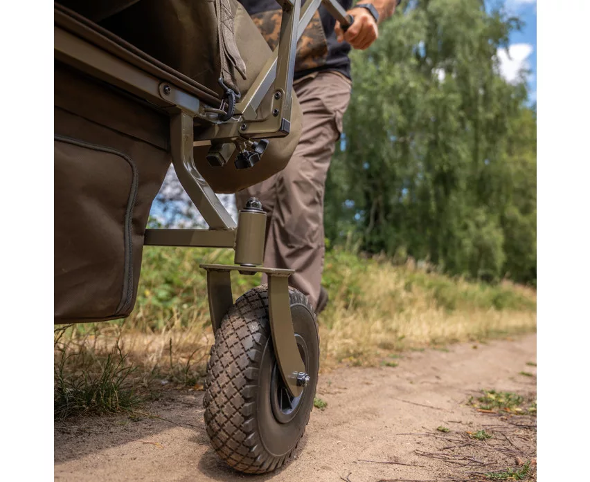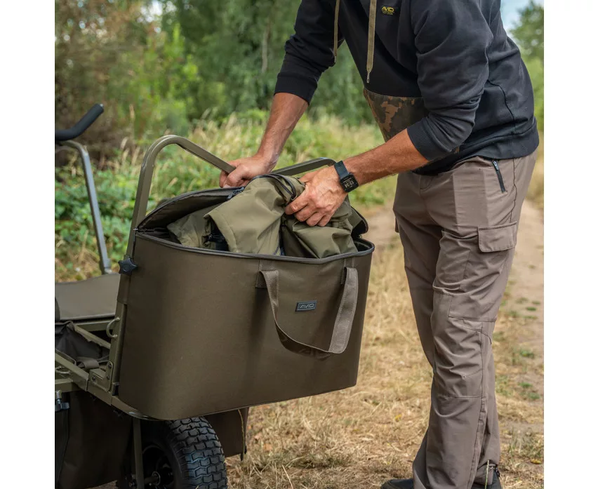 La brouette de pêche à trois roues __Avid__ Transit Tri-Terrain Barrow est un équipement robuste, spécialement conçu pour le transport confortable et sécurisé de grandes quantités de matériel. C'est un choix idéal pour les sessions de pêche prolongées, lorsque le volume et le poids de l'équipement nécessitent un moyen de transport stable et facile à diriger. La conception de la brouette permet de la déplacer facilement sur différents types de terrains, qu'il s'agisse de berges caillouteuses, de sentiers boueux ou de sols irréguliers.