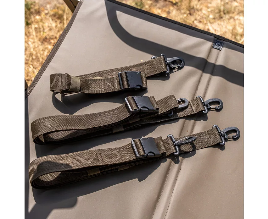 Les poignées sont réglables en hauteur, les rails latéraux peuvent être ajustés à plusieurs largeurs, et le support de chargement avant est extensible, ce qui permet de personnaliser facilement la brouette en fonction de la taille de l'équipement à transporter. Une barre de support en Y aide à fixer les cannes en toute sécurité, tandis que les trois sangles réglables et robustes maintiennent la charge stable pendant le transport.