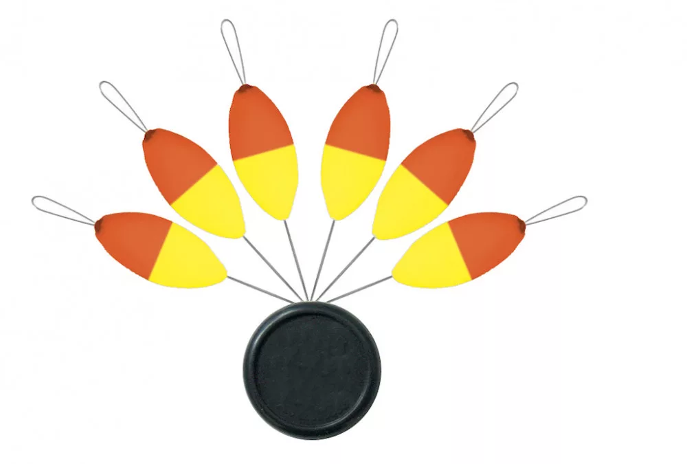 XT- BLISTER FLOAT OVAL N°2 (FLUO ORANGE/YEL.) - butée ovale bicolore (jaune/orange) pour une meilleure visibilité. Disponible en différentes tailles. Conditionnement 6 pcs/paquet