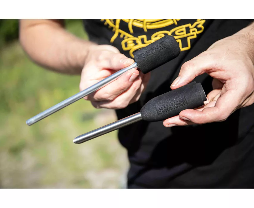 Le tube d'insertion de 9 cm de long du perforateur permet un travail précis, tandis que la partie poussoir à l'extrémité arrière aide à positionner les bâtonnets en mousse de manière sûre et stable. L'outil est optimisé pour des bâtonnets en mousse de 8 mm de diamètre, s'intégrant parfaitement aux systèmes pop-up Black Cat. Le paquet comprend également trois bâtonnets en mousse de 8 mm x 40 mm, prêts à l'emploi.