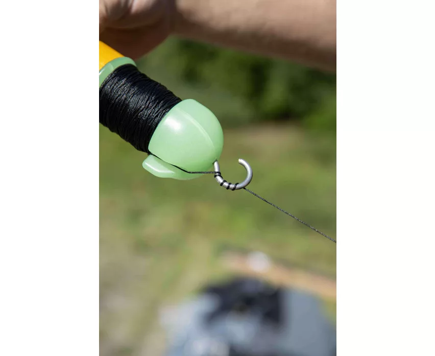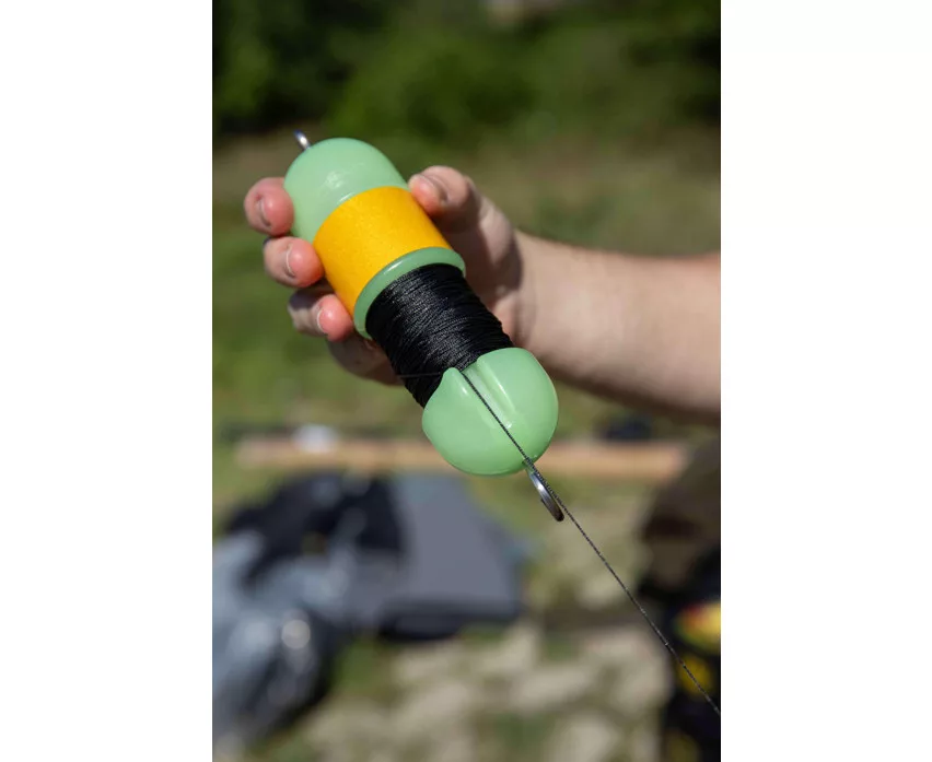 L'axe central en acier inoxydable est équipé d'un grand hameçon qui facilite un montage rapide et sûr. Le stoppeur de ligne unique en forme d'aileron maintient la ligne tendue, l'empêchant de se dérouler du moulinet pendant le remorquage. Le produit est livré pré-enroulé avec 20 mètres de ligne tressée de 0,6 mm, il est donc immédiatement prêt à l'emploi. La variante de couleur Glow (lumineuse) et les bandes réfléchissantes assurent une excellente visibilité nocturne, ce qui est particulièrement important lors de la pêche dans l'obscurité.