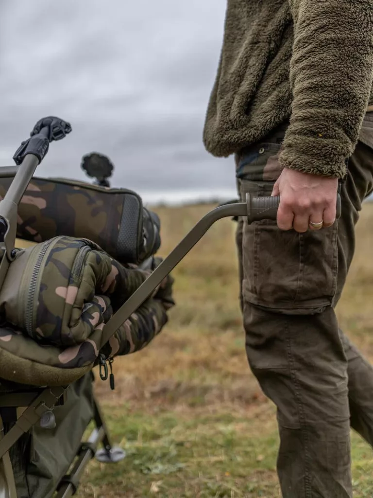 La __Fox Voyager Barrow__ est une brouette de pêche à profil bas et à forte capacité de charge, spécialement conçue pour le transport d'équipement au bord de l'eau. Grâce à sa conception pratique et à sa structure robuste, c'est un choix idéal pour tout pêcheur qui souhaite se rendre rapidement, confortablement et en toute sécurité sur le lieu de pêche choisi, même avec un équipement plus lourd.