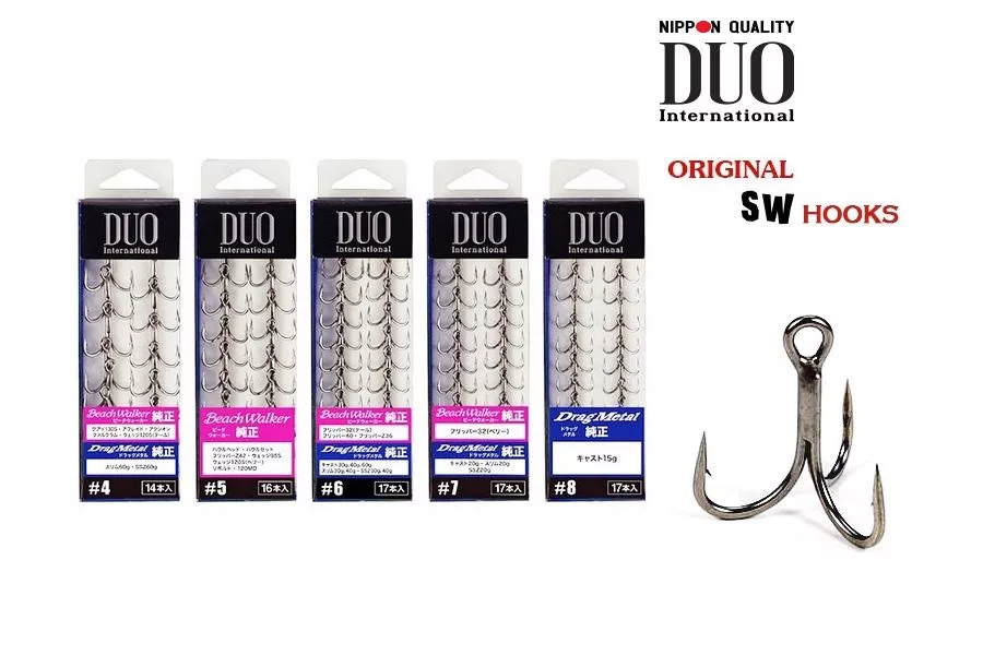 Les hameçons triples Duo Original SW sont des produits japonais de qualité supérieure, conçus principalement pour la pêche en eau salée. Ils sont robustes et possèdent une capacité de pénétration unique.