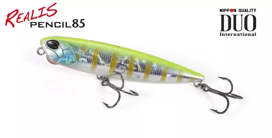 Le Realis Pencil 85 est une version plus petite du modèle original de 110 mm, utilisable aussi bien en eau salée qu'en eau douce. Sa taille réduite met l'accent sur les « morsures », tout en conservant son excellente capacité de lancer, son mouvement et sa conception sphérique qui favorise la rotation.