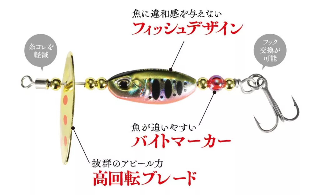 Il est équipé d'un corps de «leurre» assurant de longs lancers ! Un spinner japonais universel, utilisable en eau stagnante et dans les courants forts.