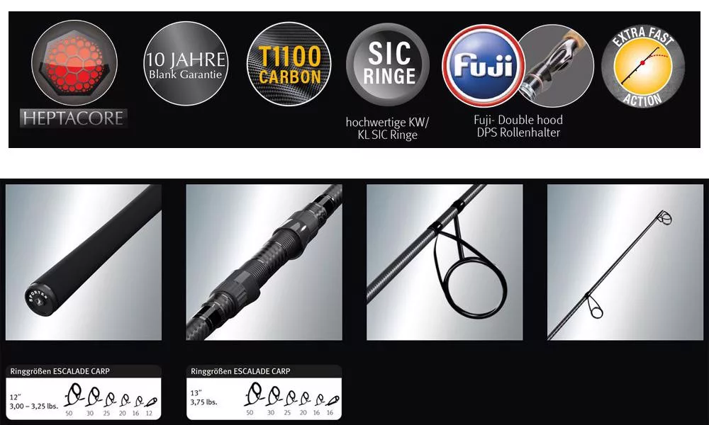 » Qualité __Sportex__ Premium : Le nom __Sportex__ est une garantie de précision allemande et de la plus haute qualité. La canne __Escalade Carp Distance__ est synonyme de durabilité et de fiabilité, elle sera votre fidèle compagne pendant de nombreuses années de pêche.