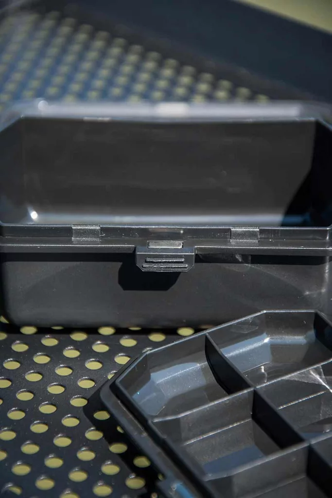 La boîte à accessoires Matrix est fabriquée en plastique durable, ce qui garantit une longue durée de vie et une grande robustesse. Ce matériau de première qualité résiste bien à l'eau et aux dommages mécaniques, ce qui lui permet de servir de manière fiable dans toutes les conditions de pêche.