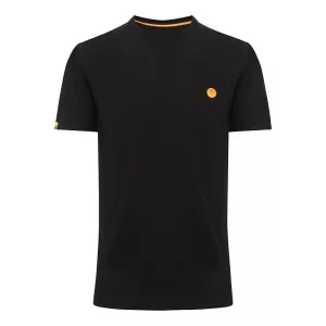 T-shirt noir léger à manches courtes. Devant avec un petit logo Guru orange brodé, et derrière avec un grand logo Guru.