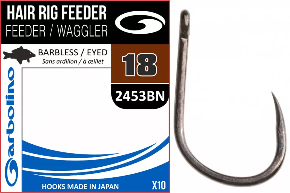 Enfin arrivé, l'hameçon HAIR RIG FEEDER/WAGGLER 2453BN ! Dans la pêche au method feeder, les hameçons sans ardillon deviennent peu à peu incontournables. Les développeurs de Garbolino, attentifs aux besoins, ont créé leurs propres types de bas de ligne „barbless”, qui sont arrivés avec les nouveautés de 2022 !