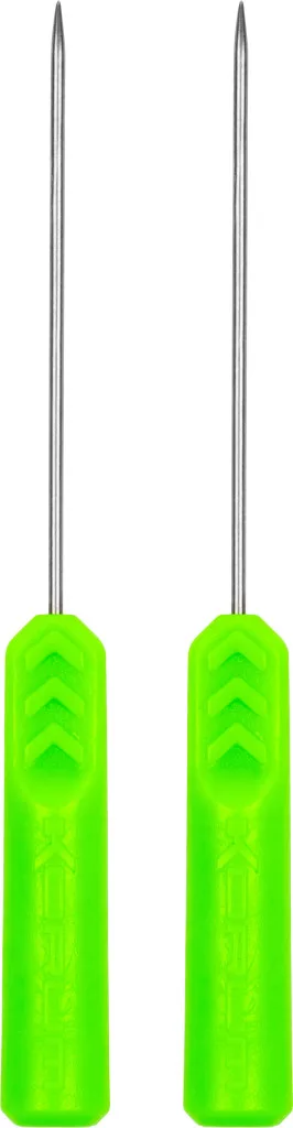 Les Korum Fluoro Quickstop Needles sont un ensemble de deux aiguilles à escher spécifiquement conçues pour l'esquage rapide et efficace des appâts du système Quickstop. Les aiguilles à escher Quickstop classiques sont réalisées dans une version moderne aux couleurs plus vives afin d'être plus facilement repérables sur la tablette latérale, dans la boîte à matériel ou même dans la tente pendant la pêche. La couleur voyante est un grand avantage, car le pêcheur utilise souvent plusieurs petits outils en même temps, et chaque seconde compte lorsqu'il faut escher rapidement ou changer de bas de ligne.