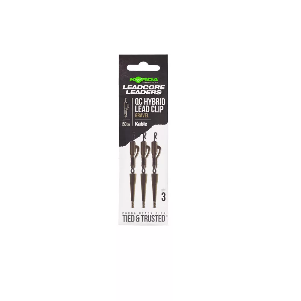 Korda Kable Leadcore Leader Hybrid Lead Clip QC Swivel Gravel Rig de pêche à la carpe 50cm 3pcs