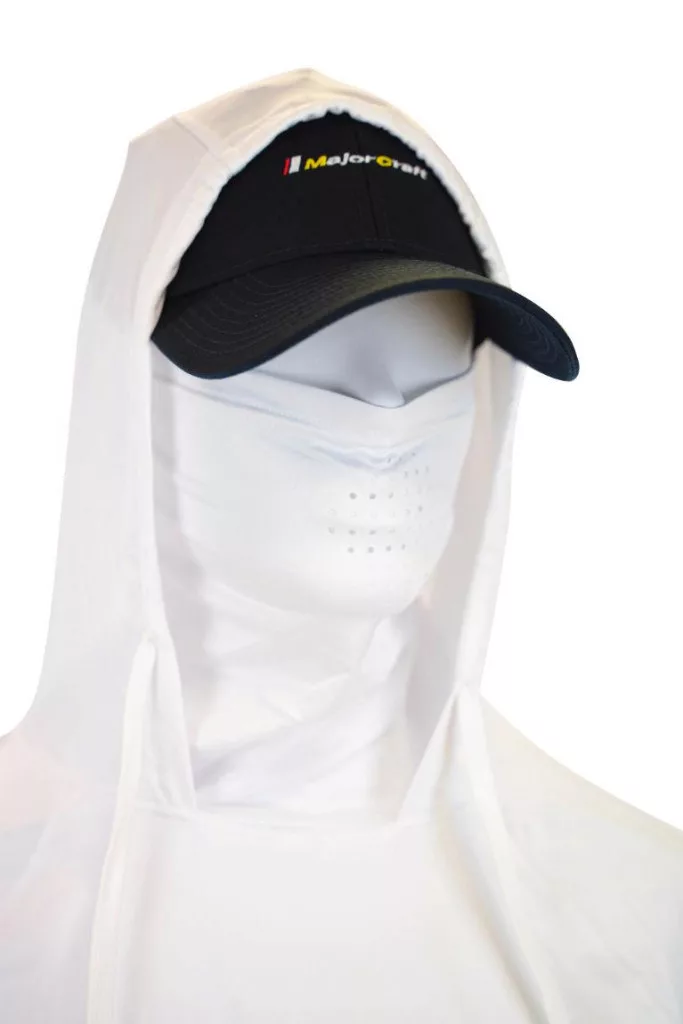 Le Major Craft Sun Protection Hoodie est un haut technique, fabriqué dans un matériau léger, extensible et respirant, en un mot, de qualité supérieure. C'est un pull à capuche à manches longues avec une excellente élasticité et une silhouette qui ne perd pas sa forme même après une utilisation prolongée. Fabriqué à 85% en polyester et à 15% en Spandex élastique. Un choix approprié par temps ensoleillé, car il protège le haut du corps, le cou et les bras des rayons UV. Outre la classification UV +50 et la protection contre les rayons solaires nocifs, il est confortable et léger, régule l'hydratation et absorbe rapidement l'humidité. Le matériau est en filet sur les côtés et sous les manches pour permettre la circulation de l'air et vous garder au frais. Major Craft n'a pas seulement mis l'accent sur l'aspect pratique du vêtement, mais a également porté attention à l'apparence esthétique, en combinant des nuances de camouflage noir et gris, tandis que la version blanc pur a été conçue pour les journées extrêmement chaudes.