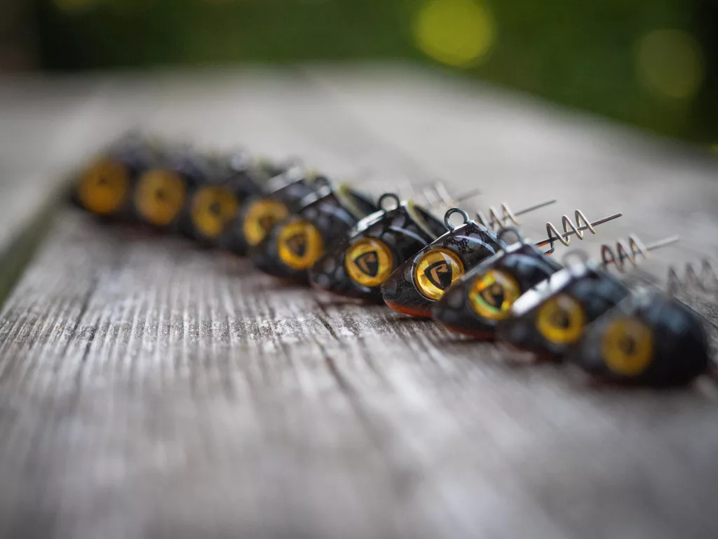 La tête de jig est équipée d'une longue tige de fixation en spirale (tire-bouchon) qui assure un maintien stable et sûr des leurres souples – tels que le Slick Finesse, le Slick Shad ou le Slick Fast. Cette conception permet à l'appât de rester en place même lors de lancers intenses ou de combats, permettant au pêcheur de se concentrer pleinement sur les touches.