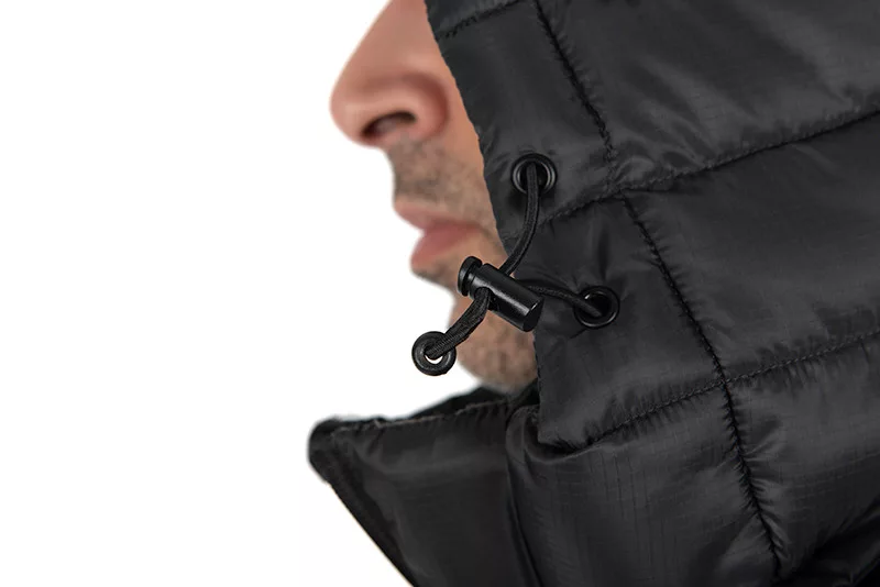 » La capuche zippée et le cordon de serrage élastique protègent le haut du corps du vent.