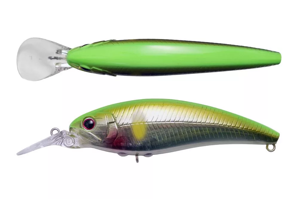 La large bavette, avec sa grande surface de prise d'eau, empêche le wobbler de 'sortir de son rythme', même dans un courant faible. Cependant, pour éviter le 'déséquilibre' et les oscillations verticales inutiles dans un courant fort, l'angle de la bavette est plat, permettant au leurre de 'dompter' l'eau et de maintenir un mouvement de nage de première qualité.