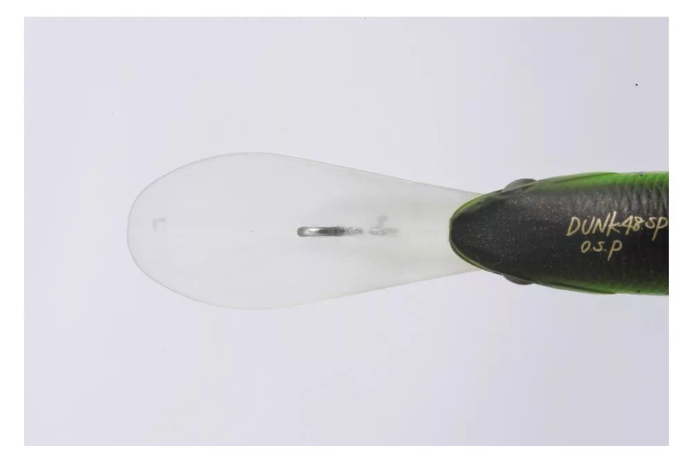 Premièrement, il est capable de pêcher une large plage de profondeurs allant de 0,5 mètre à 4,0 mètres. Sur les fonds durs, même dans 0,5 mètre d'eau peu profonde, on peut obtenir de nombreuses touches avec une simple récupération lente. De plus, les avantages sont inestimables de pouvoir attaquer une rupture soudaine, qui passe de 1,0 mètre à 4,0 mètres, sans changer d'appât. Et la capacité de faire descendre un shad élancé de 5 cm dans la zone de 3,0-4,0 mètres – qui n'était auparavant accessible qu'avec des crankbaits plongeants de grande taille – représente une puissance dévastatrice qui dépasse l'imagination. Le Dunk sera probablement un favori imbattable sur les lacs où les crankbaits plongeants sont devenus inefficaces en raison de la forte pression de pêche, ou dans les situations où les leurres souples échouent.