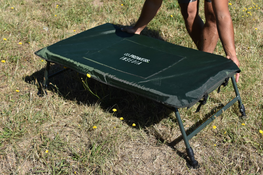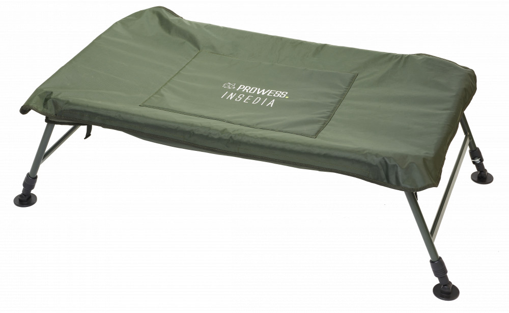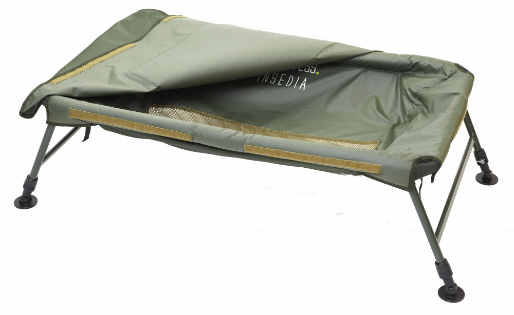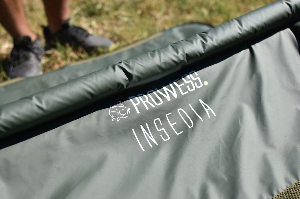 Le Prowess INSEDIA est un tapis de réception pour carpe haut de gamme, fabriqué à partir de matériaux extrêmement solides et durables. Les évacuations d'eau sur le tapis de réception permettent d'humidifier abondamment le poisson sans que l'eau ne jaillisse pendant les mouvements du poisson. Il est très rigide, mais se plie facilement, pour ressembler à une valise. Les quatre pieds réglables permettent de l'installer de manière stable sur n'importe quel terrain. L'une des caractéristiques supplémentaires de ce superbe tapis de réception est la bâche de couverture qui protège la 'prise' pendant que nous portons notre attention ailleurs, par exemple pour aller chercher de l'eau pour l'humidification.