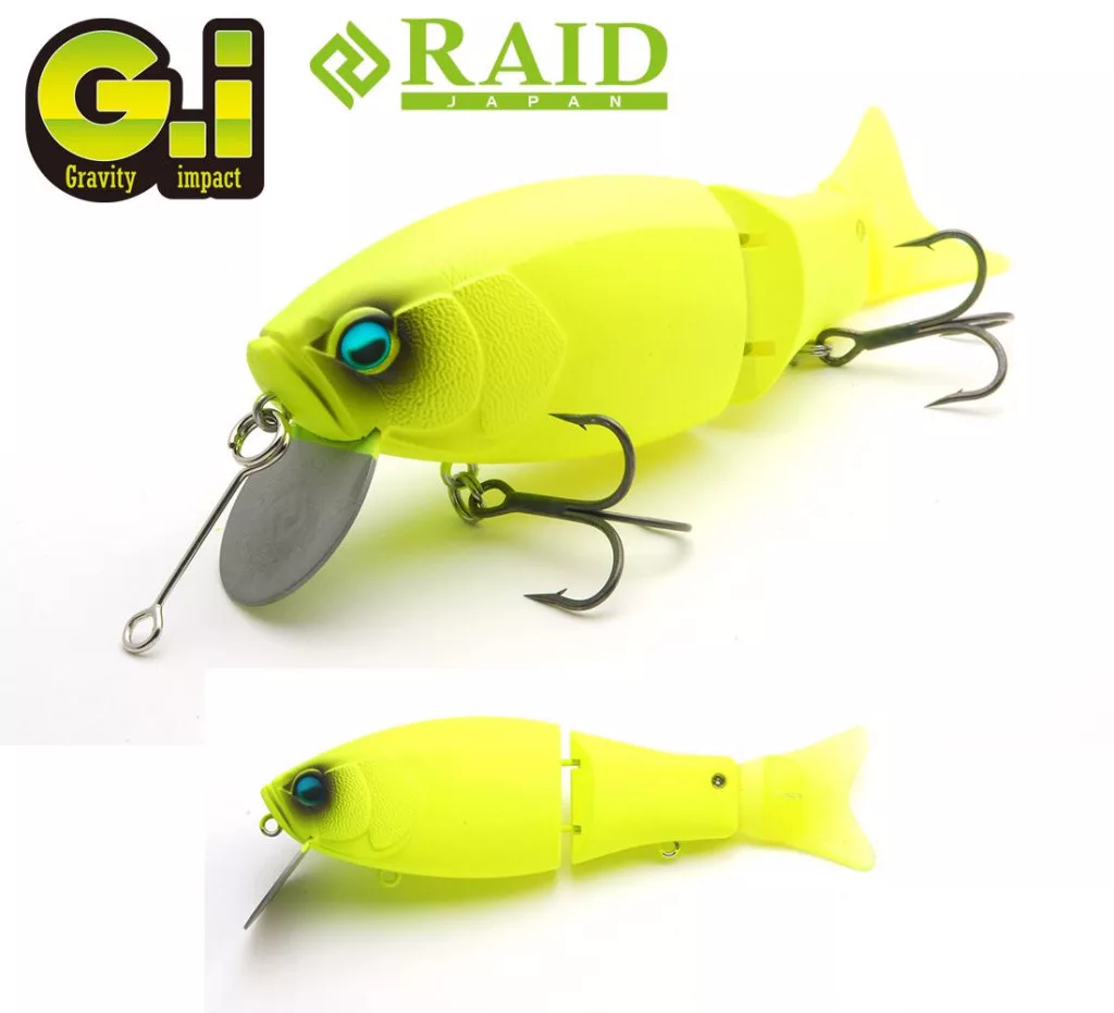 Le G.I. (GRAVITY IMPACT) est un leurre articulé compact pour les pêcheurs actifs qui aiment pêcher avec un équipement minimal. L'idée était de créer un gros leurre qui pourrait être facilement lancé avec une canne de catégorie MH (medium-heavy) – grâce à son bavette spéciale en tôle métallique.