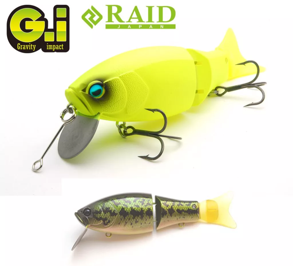Le G.I. (GRAVITY IMPACT) est un leurre articulé compact pour les pêcheurs actifs qui aiment pêcher avec un équipement minimal. L'idée était de créer un grand leurre qui puisse être facilement lancé avec une canne de catégorie MH (medium-heavy) – grâce à sa bavette spéciale en tôle métallique.