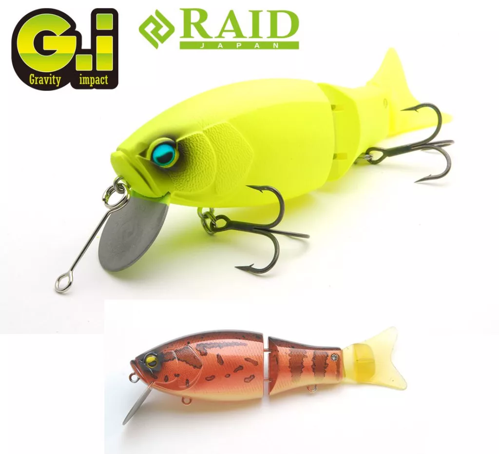Le G.I. (GRAVITY IMPACT) est un leurre articulé compact pour les pêcheurs actifs qui aiment pêcher avec un équipement minimal. L'idée était de créer un gros leurre qui pourrait être facilement lancé avec une canne de catégorie MH (medium-heavy) – grâce à son bavette spéciale en tôle métallique.
