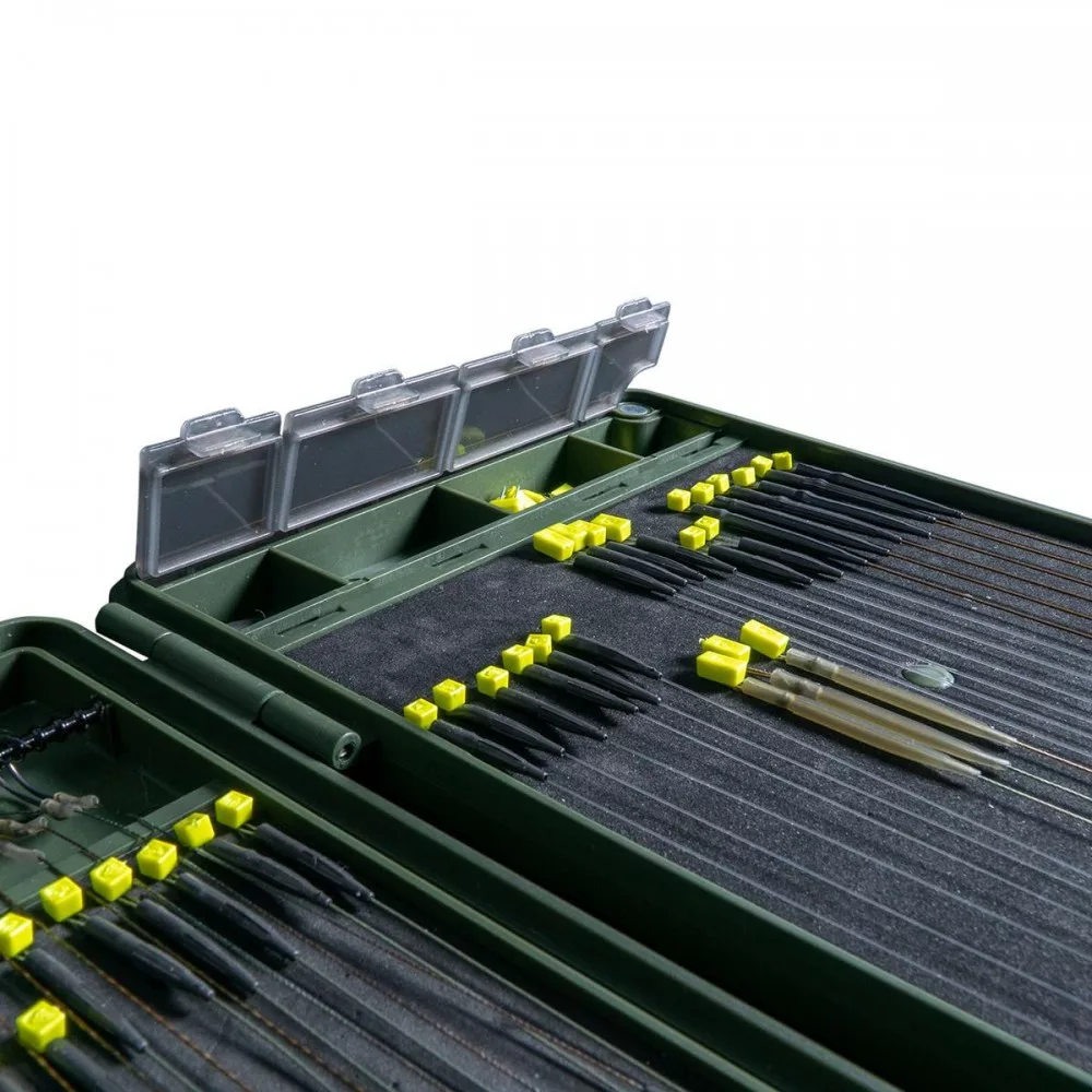 Étant donné que le bas de ligne est l'une des parties les plus importantes de l'équipement de pêche, il est logique de le ranger de manière suffisamment sûre. La boîte Armory Rig Box permet précisément cela. Bien que légère et compacte, l'Armory Rig Box peut stocker plus de 100 montages à la fois, ce qui signifie que vous êtes toujours prêt à tout.