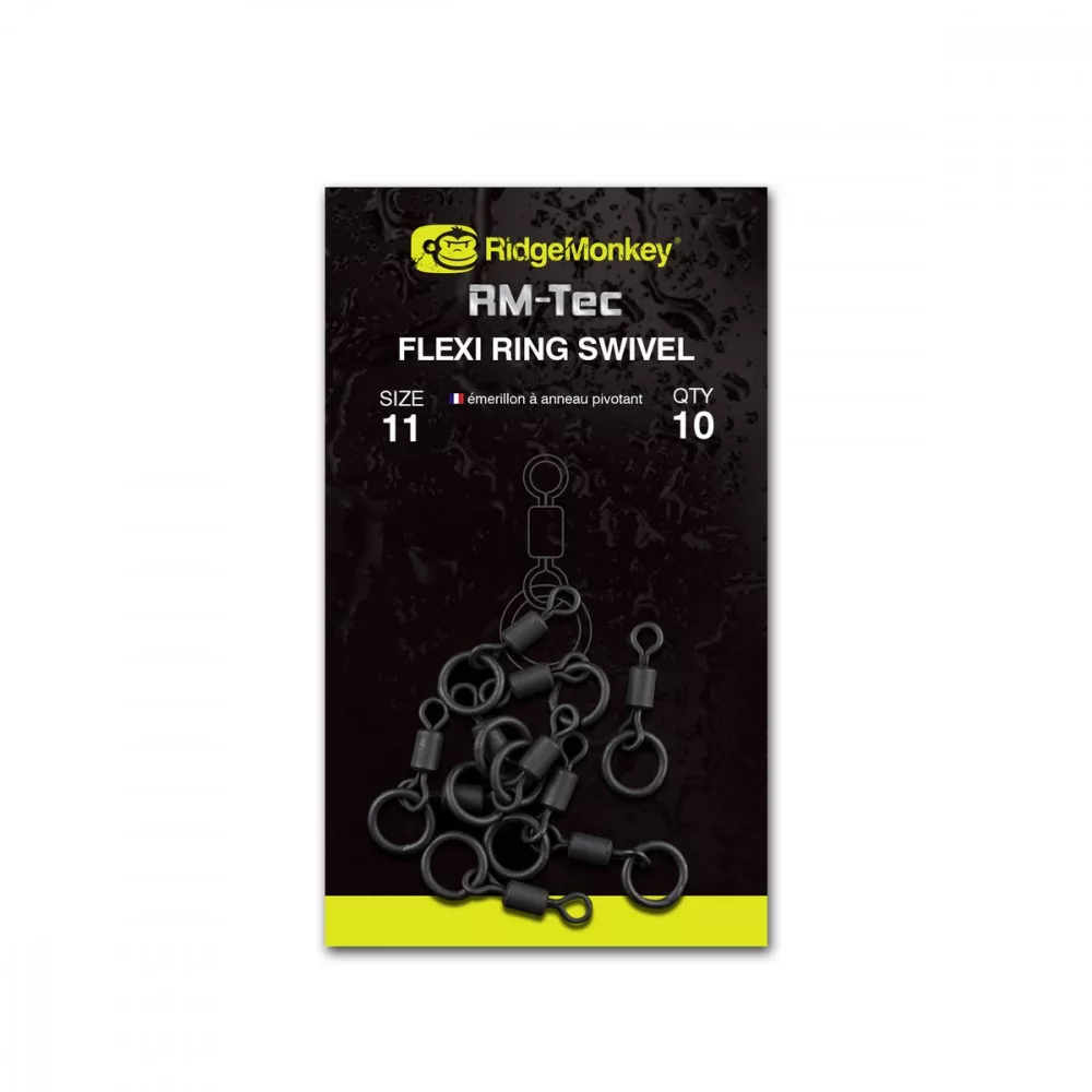 Émerillon à anneau flexible Ridgemonkey RM-Tec - L'émerillon à anneau flexible RidgeMonkey RM-TEC s'adapte à presque tous les clips plomb des principaux fabricants. Grâce à l'anneau, il permet une grande liberté de mouvement pour notre bas de ligne. Matériau robuste de qualité supérieure, maintien sûr, surface lisse et anti-reflet.