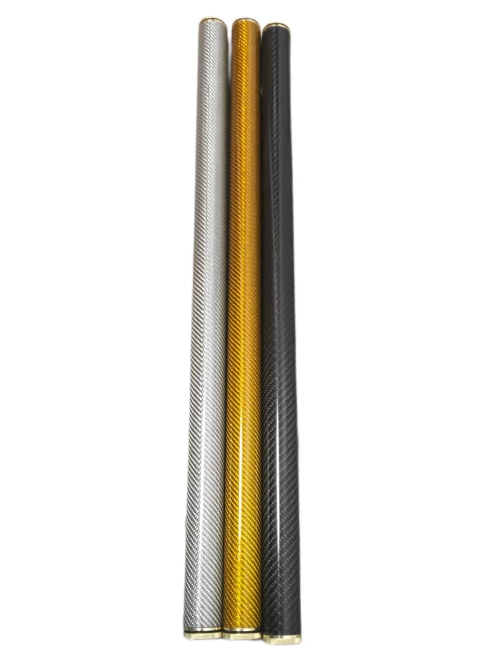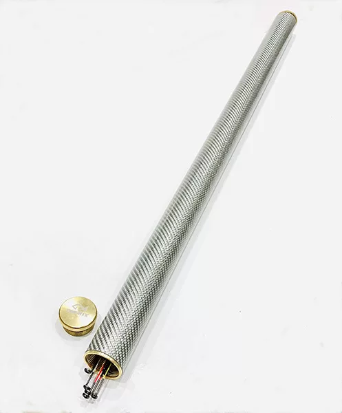 Support de scion feeder en carbone. Un tube en carbone multicouche à haute résistance, avec un design unique et élégant, conçu pour le stockage sécurisé des scions de cannes feeder, avec des bouchons métalliques filetés aux deux extrémités.